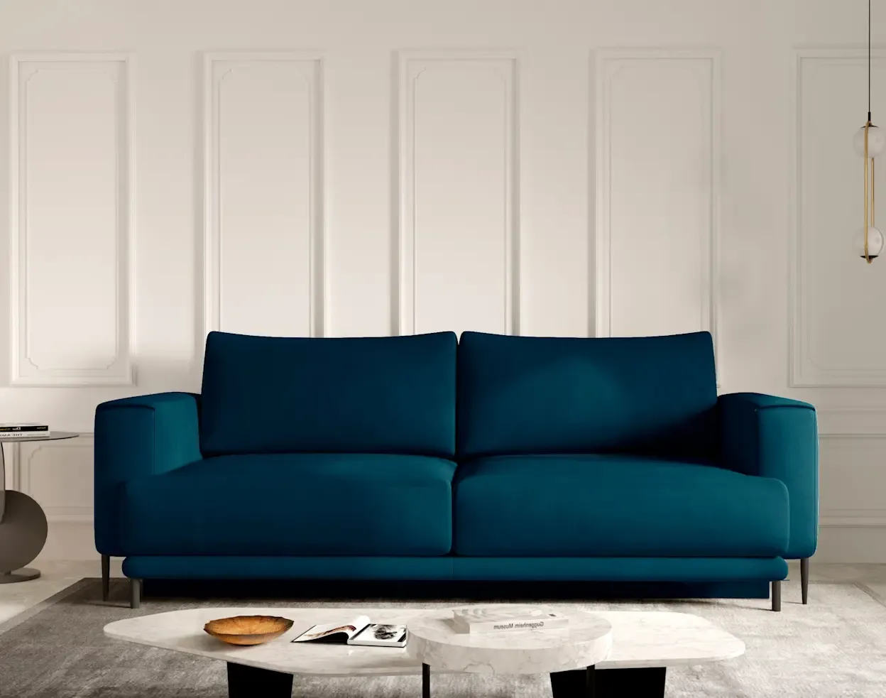 Nowe trendy w aranżacji wnętrz z niebieską kanapą